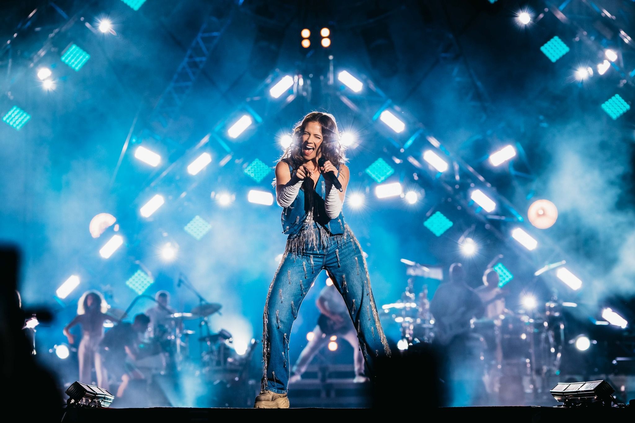 “This is something that the guys noticed immediately when we first worked together back in 2022, and they wanted to keep on that path with this new show,” continued Scott. “The band absolutely loved the use of silhouettes in that show, so we immediately started discussions on how to use less key wash light and allow light to come from the rig naturally. With the record that the band is touring (Almost Here), the vision was to create texture around the guys without washing it out using DS fixtures. I have six Chauvet Outcast 2X Washes placed on the DS sides of the deck to give a bit of punch to their faces during certain moments, but most of the time these fixtures are used along with the rest of the rig as texture light.”